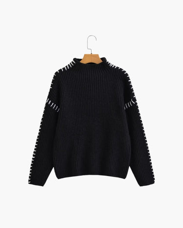 Wrap yourself in warmth and style with the Lila Stitch Sweater, a refined take on casual luxury. This oversized black sweater features striking white stitch detailing along the sleeves and shoulders, adding a modern touch to its classic silhouette. Crafted from high-quality, soft knit fabric, it offers both comfort and effortless elegance. Perfect for layering on cooler days, this sweater elevates your casual wardrobe with a hint of artistic flair, making it ideal for both relaxed weekends and stylish outings